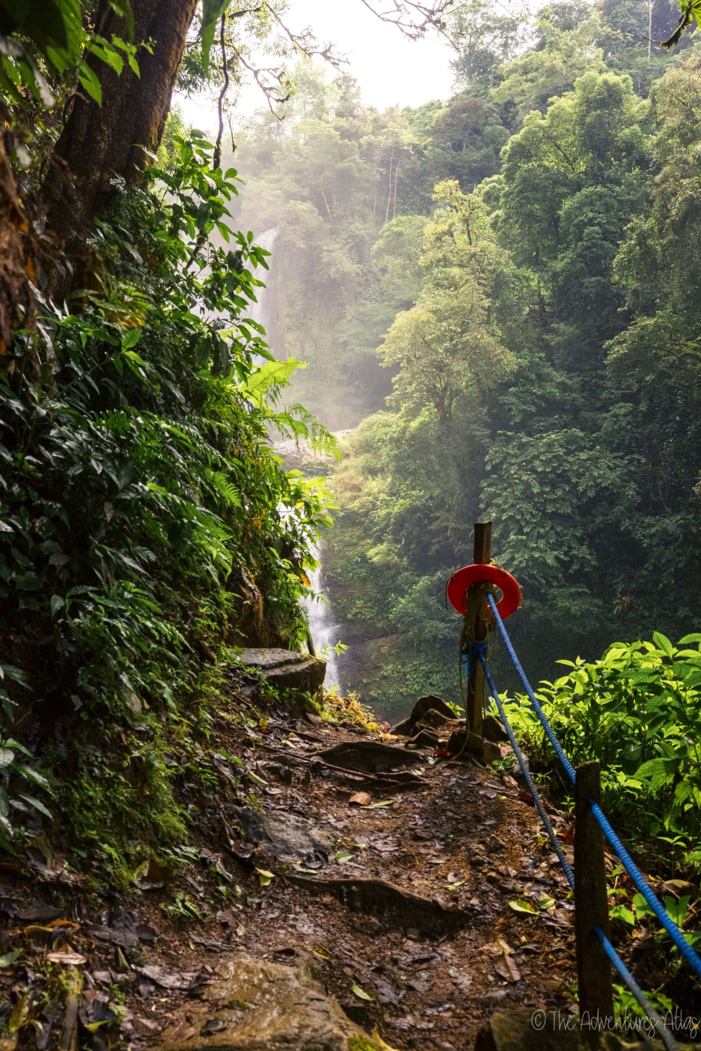 The lower falls are accessed via a 100 meter walk down a steep staircase. I recommend wearing shoes with some sort of grip on them (grippy water shoes work well), because the rocks leading up to the falls are slippery.